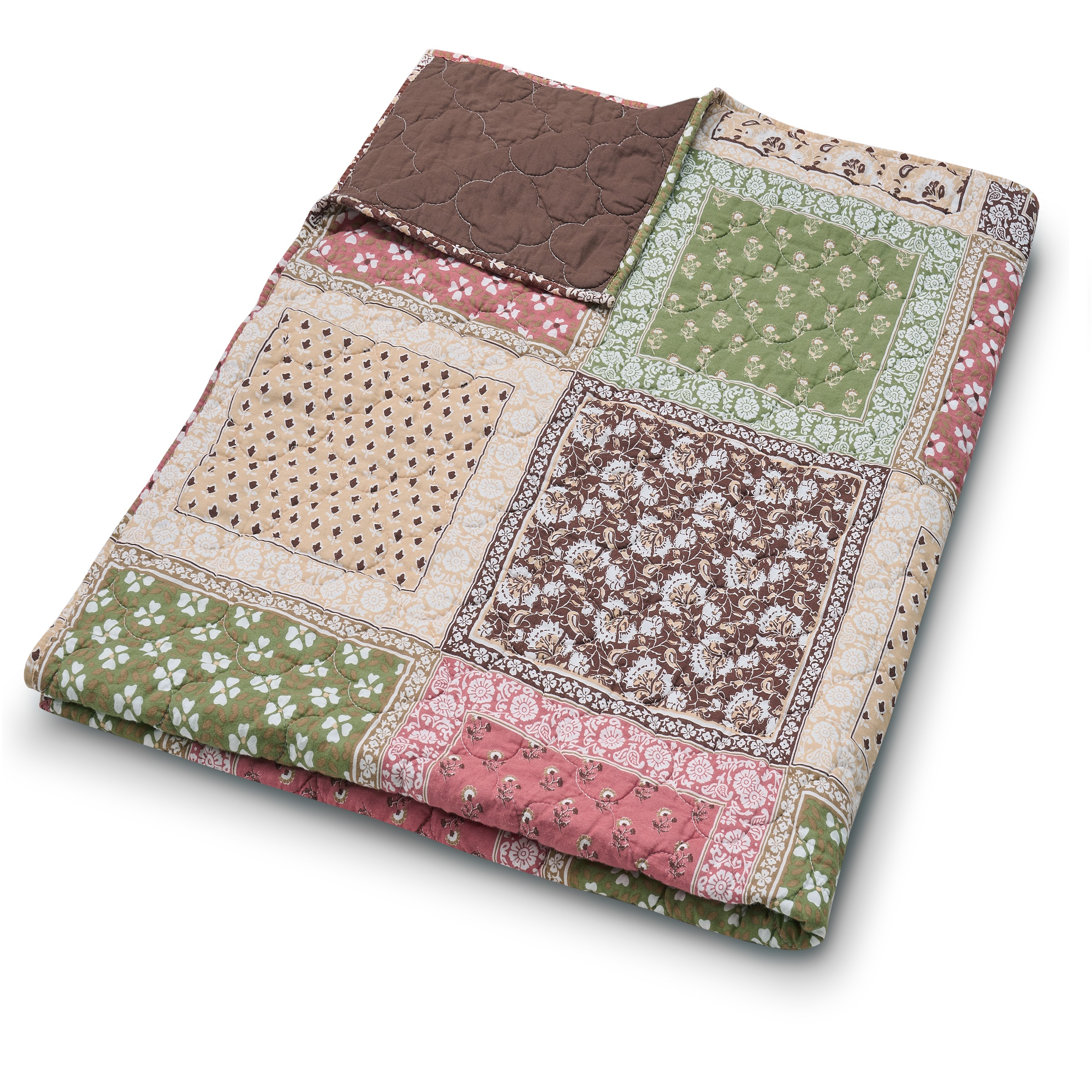 Transform your space with the earthy and elegant, naturally cozy Priya collection. Wonderfully inviting, Priya transforms your space with the calming warmth of natural color. The design features 12″ scarf-like squares, printed as a single whole cloth to creating a hand-stitched patchwork look without the weight. Its palette of browns, greens, and soft sienna tones bring a grounded, organic feel to any bedroom. The cotton face and cotton-rich fill offer breathable comfort season after season. Flip it over to reveal a coordinating solid for a completely different look, adding warmth, artistry, and easy versatility to any décor.
