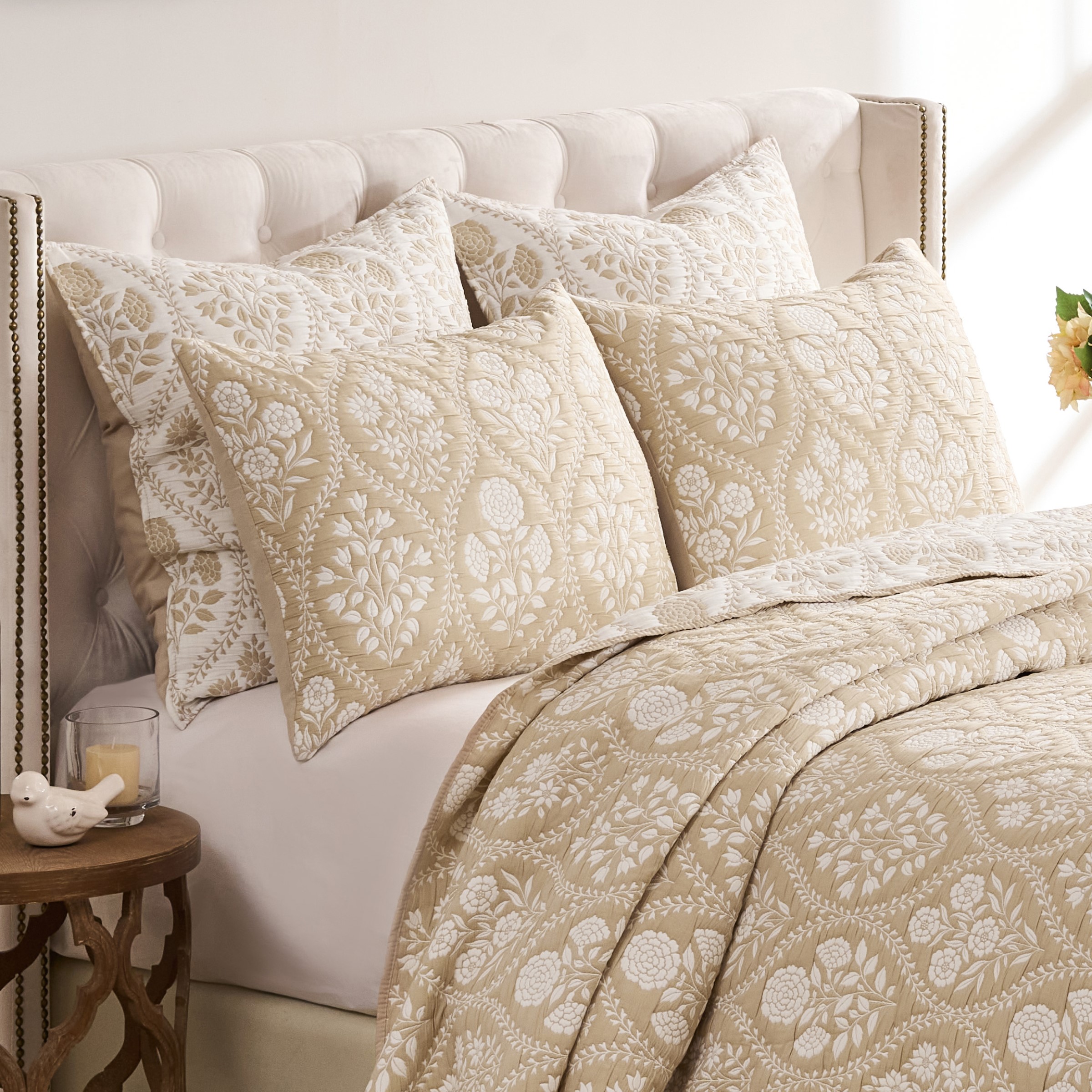 Classic elegance meets contemporary design in the Serena collection. Expertly woven in a matelassé technique for rich texture, Serena features a graceful ogee layout of floral garlands encircling delicate bouquets. The design brings a timeless, tailored feel to your bedroom while offering modern versatility in its fully reversible two-tone palette. Prewashed for lasting softness and a perfect fit, crafted for comfort and everyday elegance. Serena blends beautifully with traditional, cottage, or transitional decor, making it a versatile essential for year-round layering.