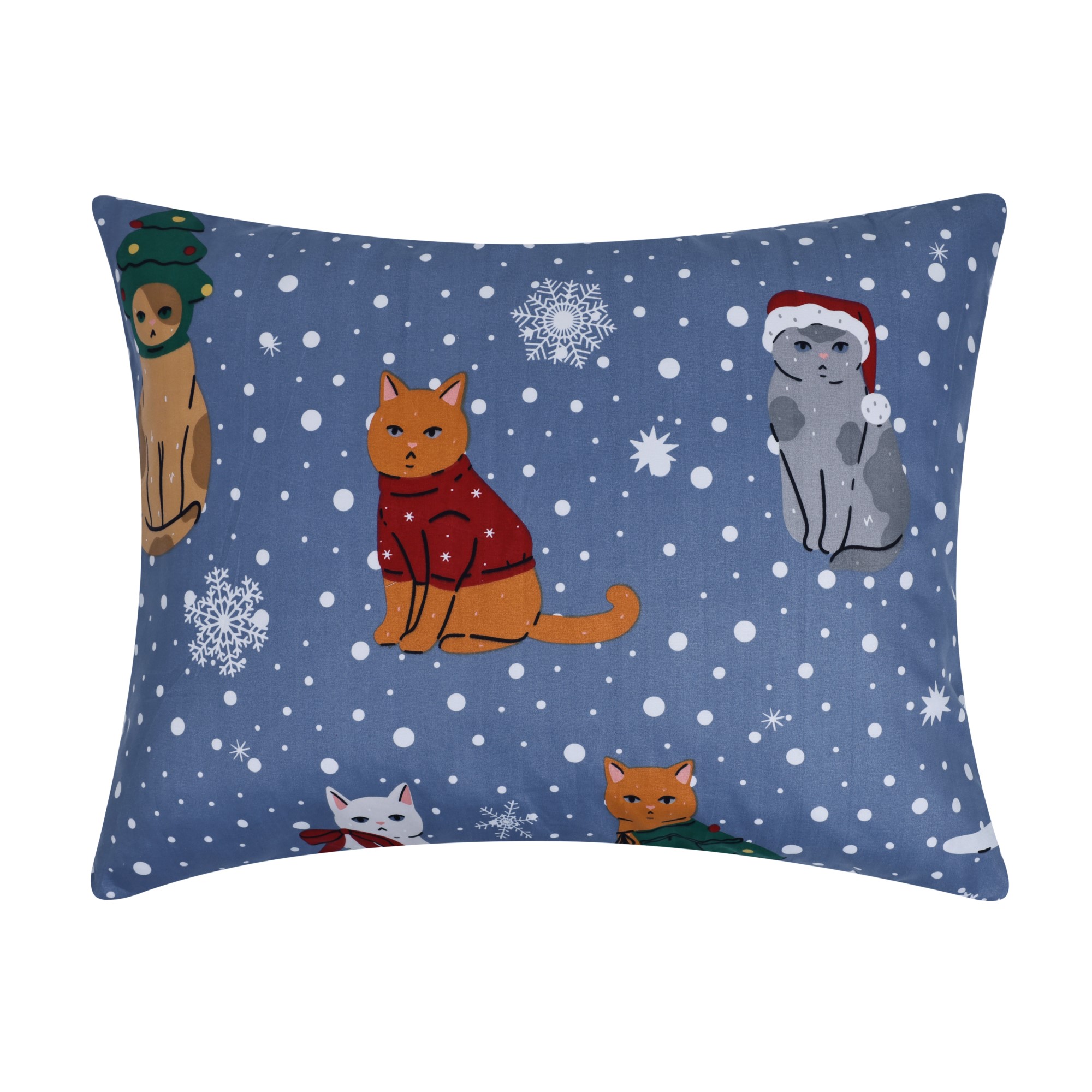 Celebrate the season with Winter Whiskers, the perfect accessory for pet lovers who adore both dogs and cats. One side features cheerful pups dressed in cozy holiday sweaters, hats, and coats, playing in a snowy winter wonderland. Flip it over to find festive felines frolicking in seasonal style, bringing playful charm to your space. These coordinating reversible pillow shams—available separately in standard and king sizes—let you switch from team dog to team cat whenever the mood strikes. Each sham includes a hidden side zipper to keep your pillow securely tucked inside, blending comfort, convenience, and holiday cheer.